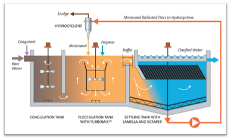 - Recovered micro-sand is recycled back into the flocculation basin.